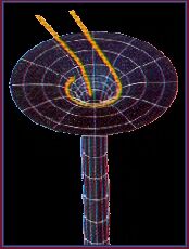 Además según la relatividad general, la gravitación modifica el espacio - tiempo en las proximidades del agujero.