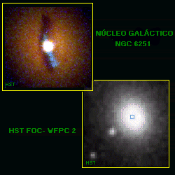 Pero mayores evidencias sobre posibles agujeros negros siguen apareciendo. Una de las más relevantes registrada recientemente es la encontrada en la galaxia activa NGC 6251, ubicada a 300 millones de años luz desde la Tierra en la constelación de Virgo. Una sorprendente visión reportada por el Telescopio Espacial Hubble de un disco o anillo de polvo, urdido por efectos gravitatorios, que se trasluce a través de la emisión de un chorro de luz ultravioleta que estaría emanando desde un posible agujero negro.